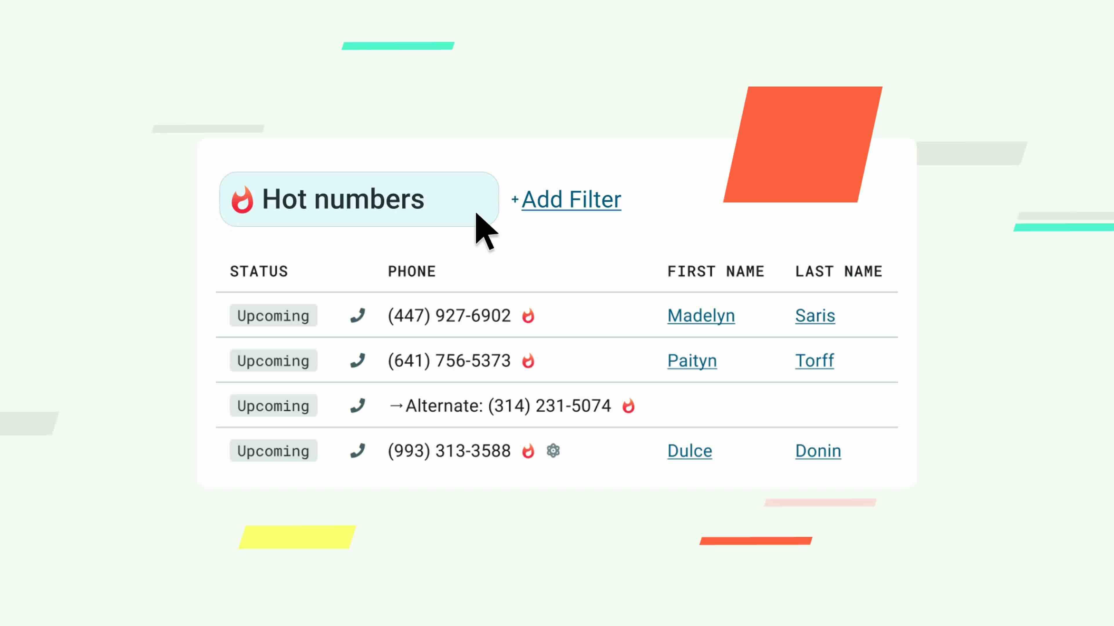 Orum’s solution Hot Numbers, for instance, can analyze factors like engagement history, lead scoring, and past behavioral patterns to give your sales teams clear direction on how to prioritize their efforts.