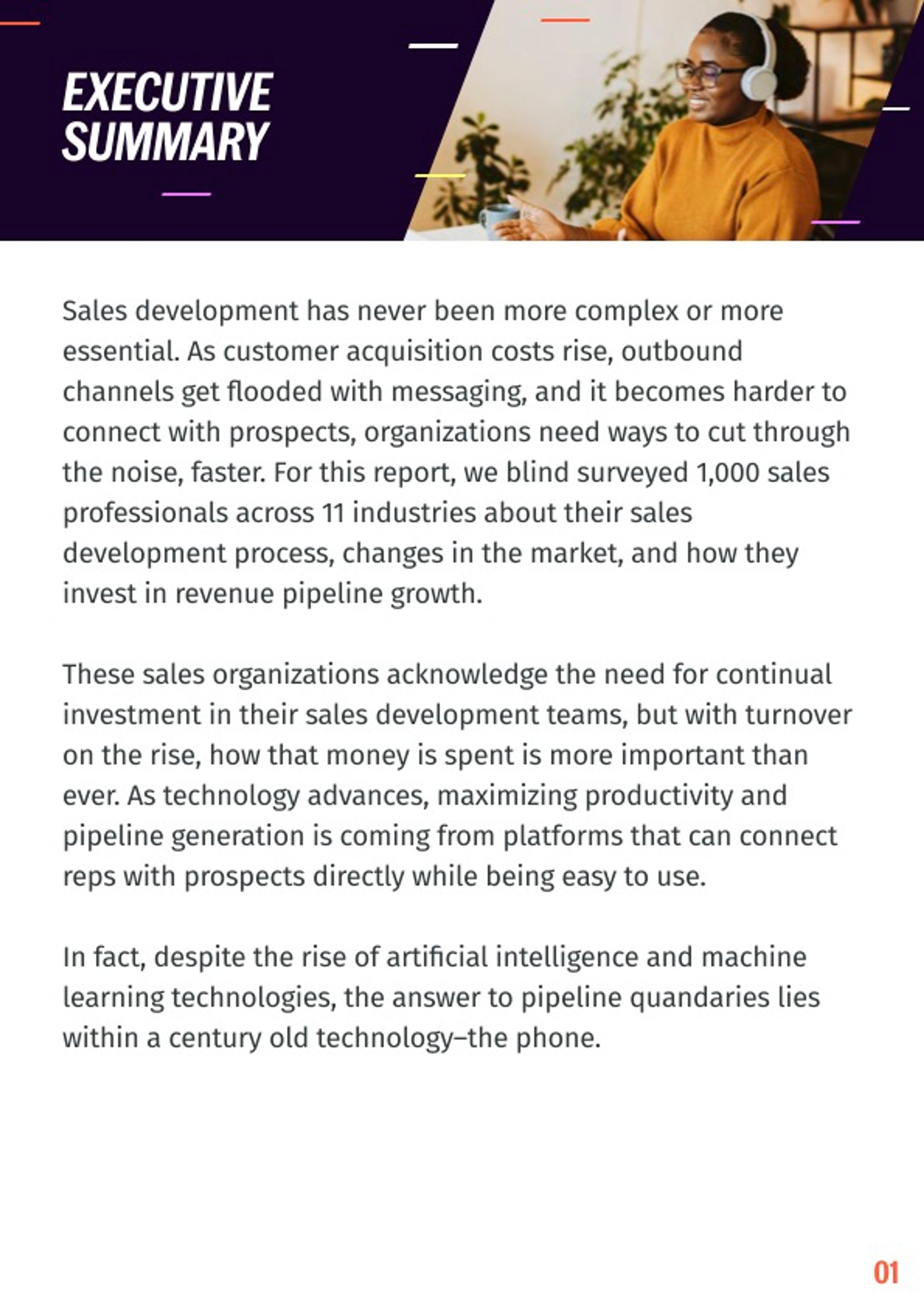 This survey report provides not only the data behind the modern sales development environment, but also offers a plan of action that you can use to build a sustainable and supercharged sales organization. One that is based on sales development you can count on to reliably grow pipeline opportunities efficiently and effectively.